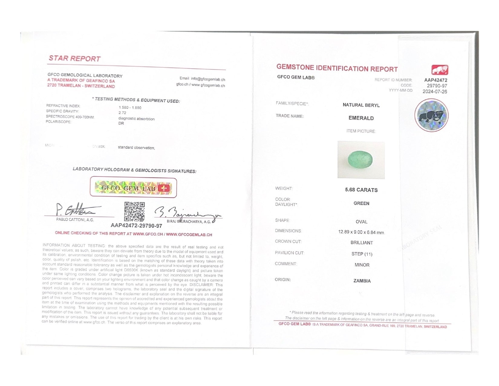 Original Natural Emerald weighing 5.68 Carat From Zambia.